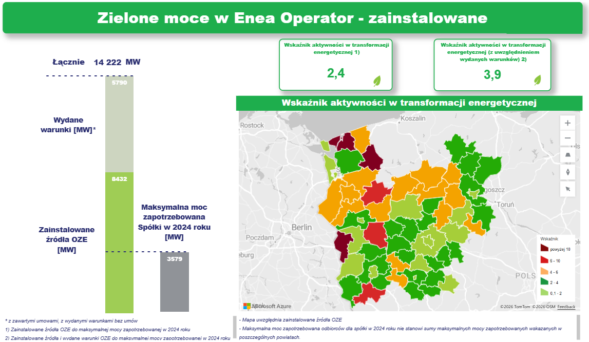 Enea Operator wprowadziła codzienną aktualizację map pokazujących przyłączone i dostępne moce źródeł odnawialnych. To kolejny krok w kierunku pełnej transparentności i wsparcia inwestorów zainteresowanych przyłączeniem lub rozwojem swoich instalacji.