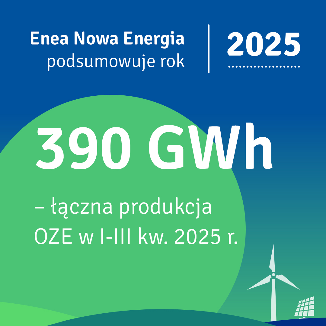 Enea Nowa Energia to spółka zarządzająca odnawialnymi mocami wytwórczymi Grupy Enea na terenie całego kraju. Od 2020 roku odpowiada za zwiększanie potencjału OZE i rozwój zielonych technologii, wspierając transformację energetyczną Polski. W skład zielonego parku wytwórczego wchodzi 15 farm wiatrowych (z uwzględnieniem akwizycji), 17 farm fotowoltaicznych oraz 21 elektrowni wodnych. W trzech pierwszych kwartałach 2025 roku instalacje te wyprodukowały łącznie 389,7 GWh energii elektrycznej, co stanowi wzrost o ponad 30% r/r.